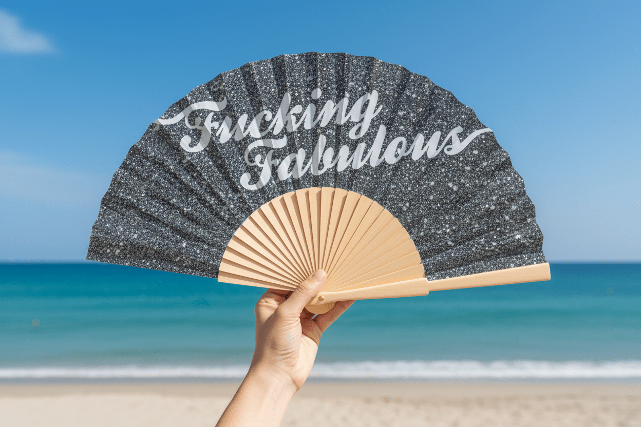 Make a statement at any event with our Fucking Fabulous Glitter 23cm hand fan. The mega glittery design and wood handles make it impossible not to get noticed. Dazzle and shine in style with this fan in hand!