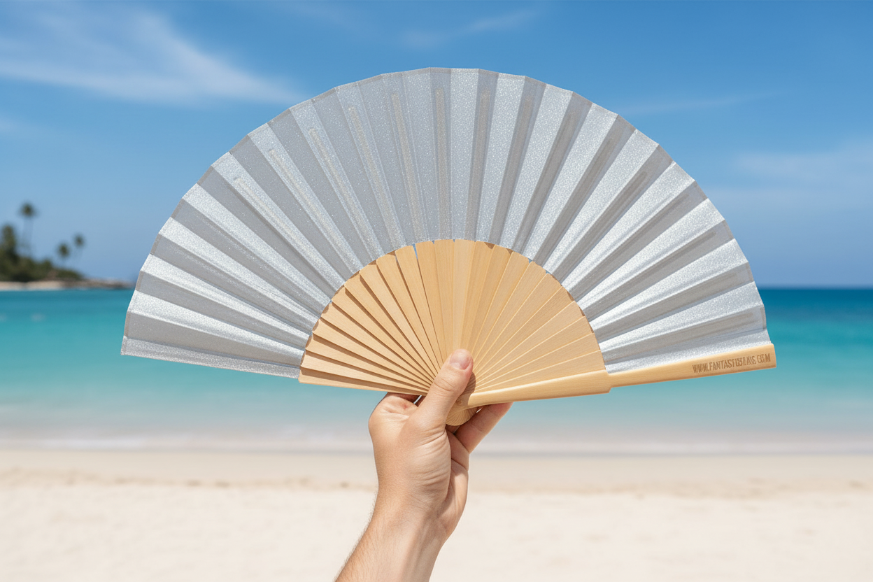 Silver Pearlised Shimmer 23cm fan