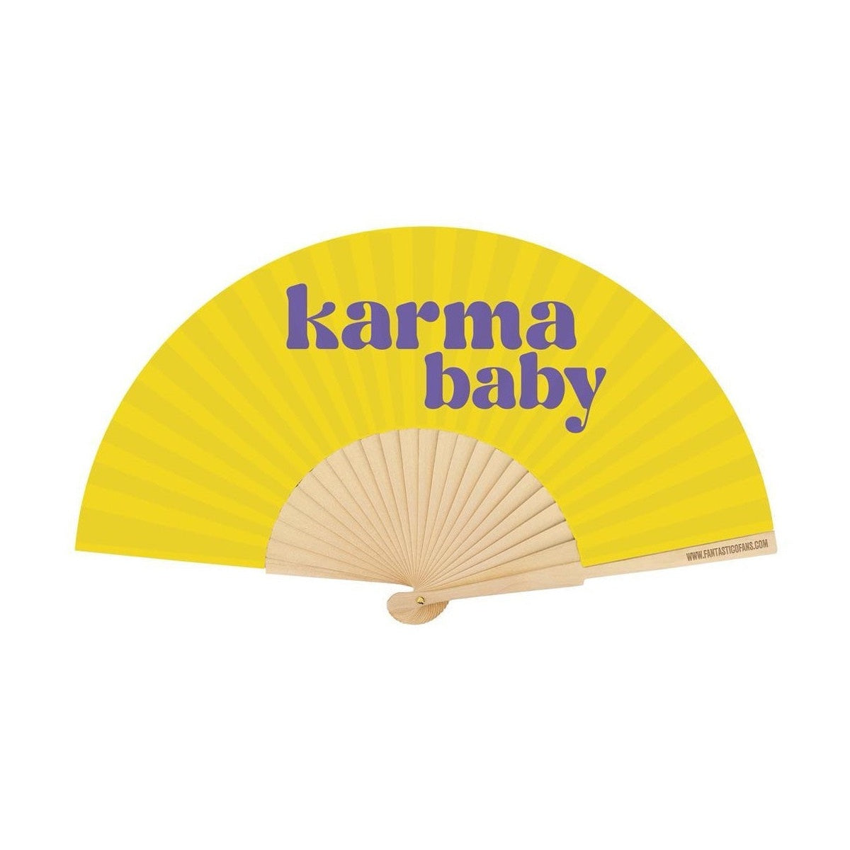 What goes around comes around. This 23cm fan declares "Karma Baby" with the certainty of someone who trusts the universe to settle scores. Fun, knowing, and unapologetically confident, it's for those who believe in cosmic justice. Carry it and let karma do the heavy lifting.