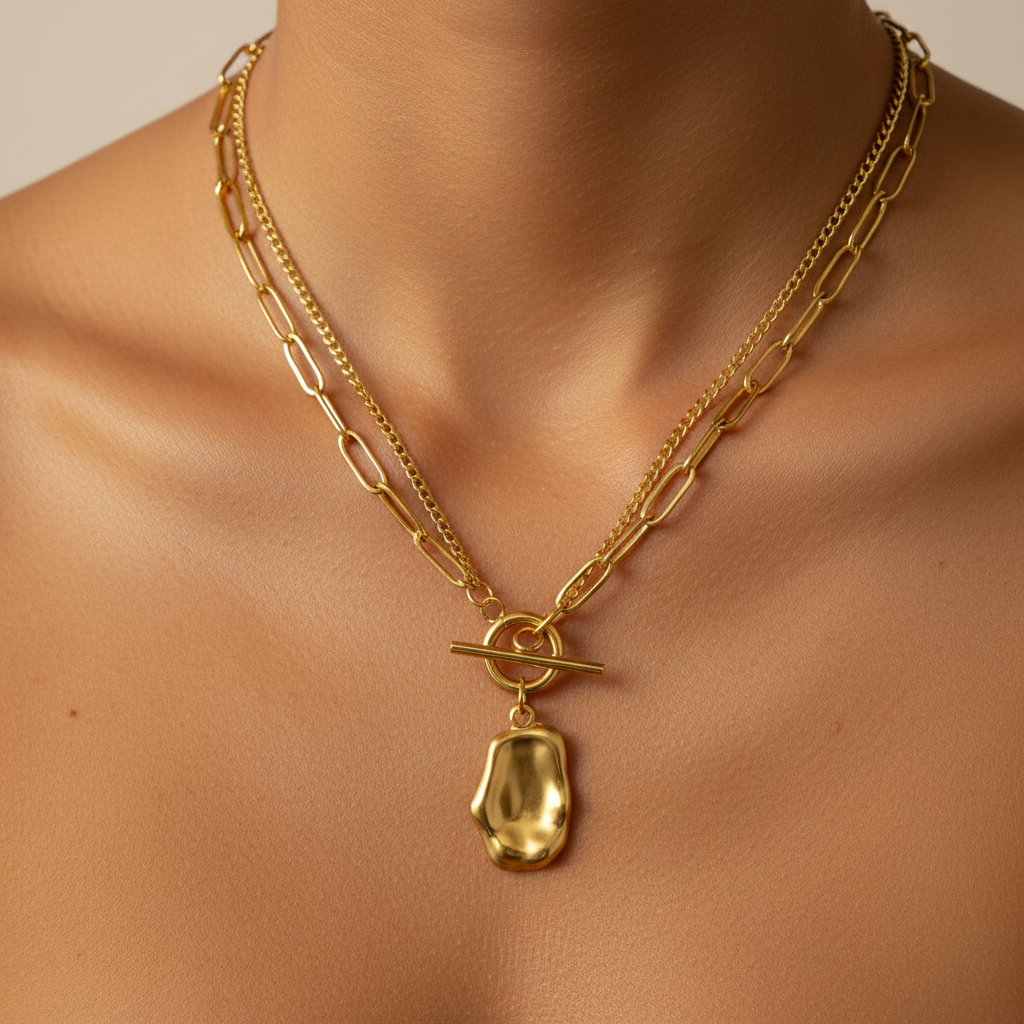 Dare to make a statement with the Coral 2 Row T Bar Necklace. This audacious piece combines 18k gold plated sophistication with a bold two-row design that commands attention. The innovative t bar closure lets you wear it two ways—layer it for drama or style it solo for understated confidence. Waterproof, perfume-proof, and party-proof, this necklace is built for bold moves. Arrives in a luxury gift box, ready to elevate your jewelry collection.