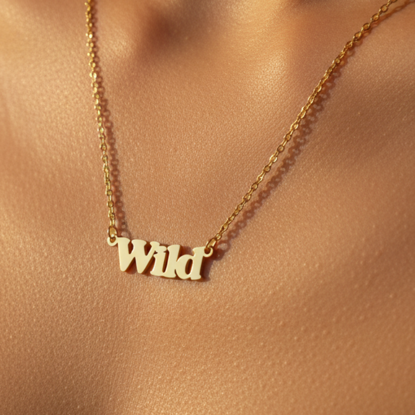 These gold-plated necklaces feature cheeky words and are made of stainless steel, making them waterproof, party-proof, and even perfume-proof.